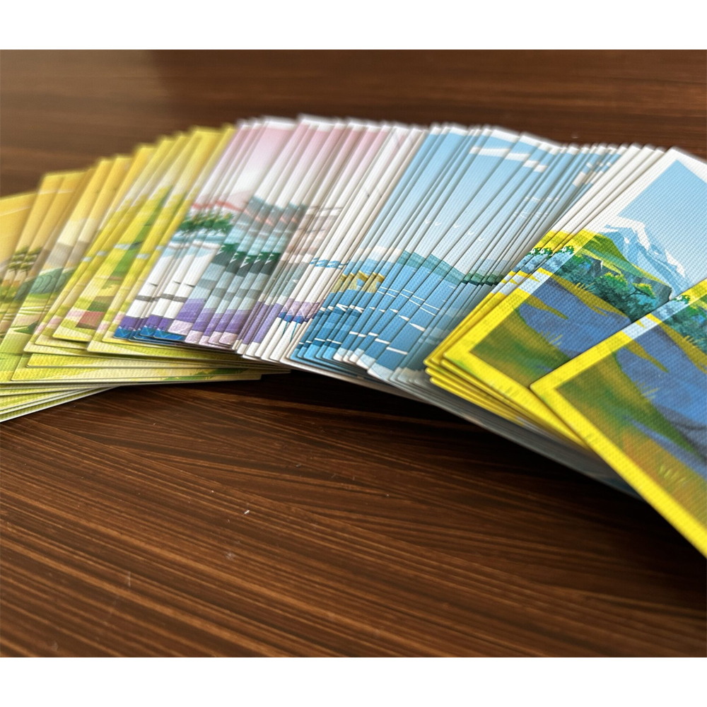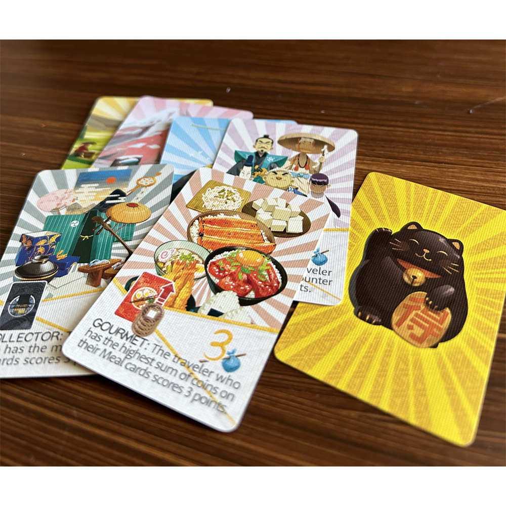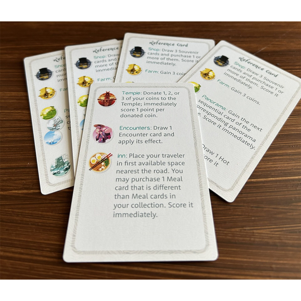 • Our version is manufactured by Panda using our standards for component quality (e.g., the panorama cards will be upgraded to the same 310gsm cardstock we use for all our cards). For any components that need to integrate with existing Tokaido expansions, we're matching the composition for full compatibility.