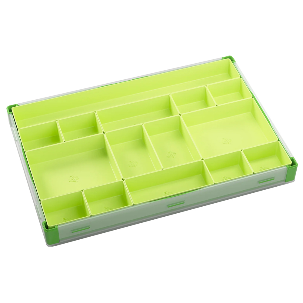 • 15 removable trays in 5 different sizes