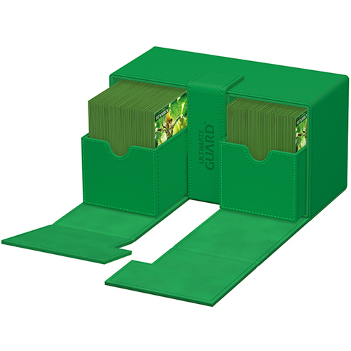 I love these products and own two of them. Fits a single sleeved commander deck in each side and you can place tokens, dice or sideboard cards in the middle.