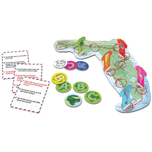 We did not have a lot of hope for this game once we saw the small game board, but we quickly learned that it was small for a reason. These questions are hard! The Florida Man legacy means that any of the options on any given card sound plausible, and as such you will get a lot wrong. It is a slow, but enjoyable, journey from the panhandle to the southern tip of the state. The theming is completely on brand for a Floridian-inspired game, with touristy t-shirt game pieces and alligators. The biggest distractions are the grammar and random capitalization. At least one card had a story option that stopped mid way through a sentence. A bit more time in QA would have served it well.