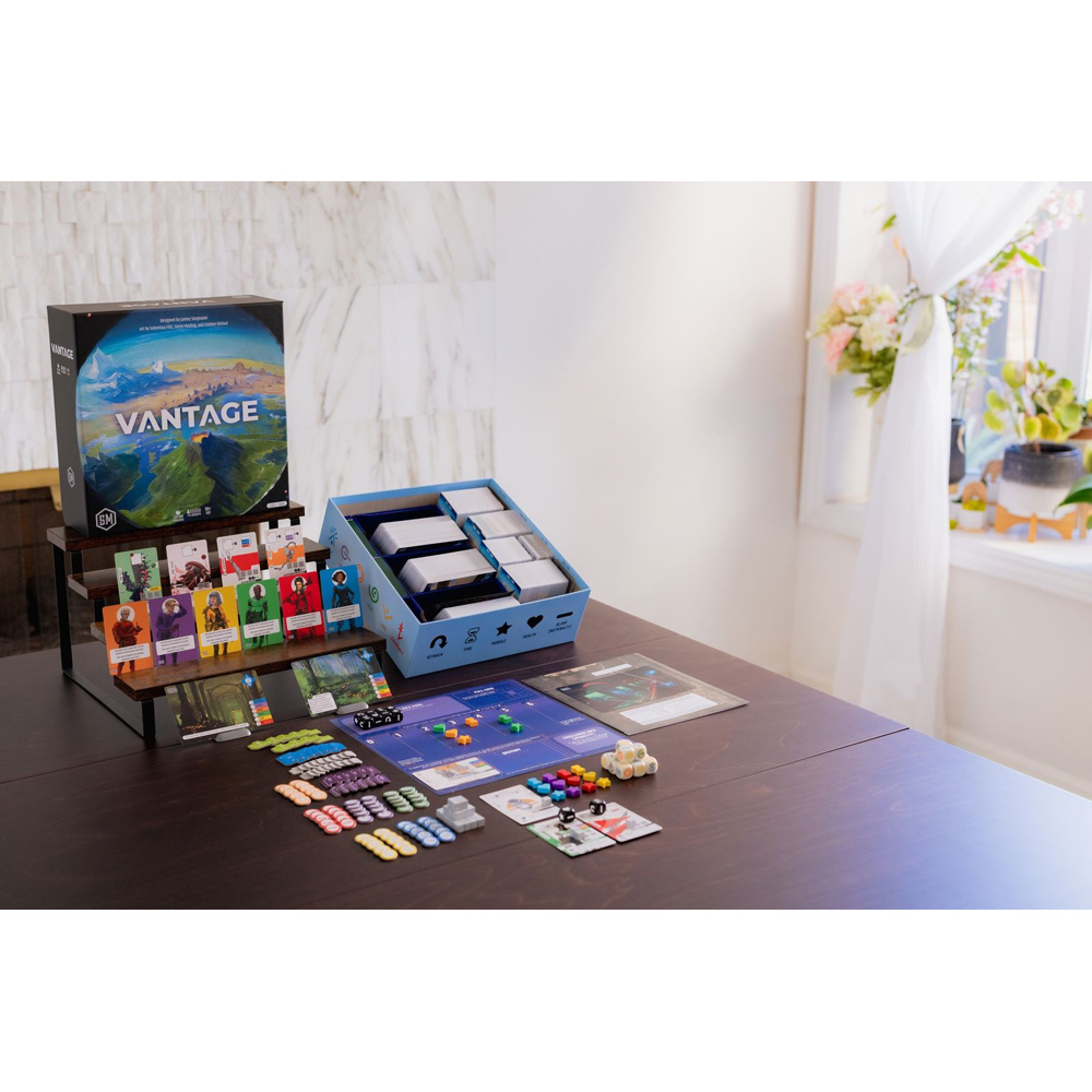 Vantage is not a campaign game. Each game is a standalone experience; you bring to future sessions only what you've learned about the world. It is completely self-contained with no expansions - just a few accessories like