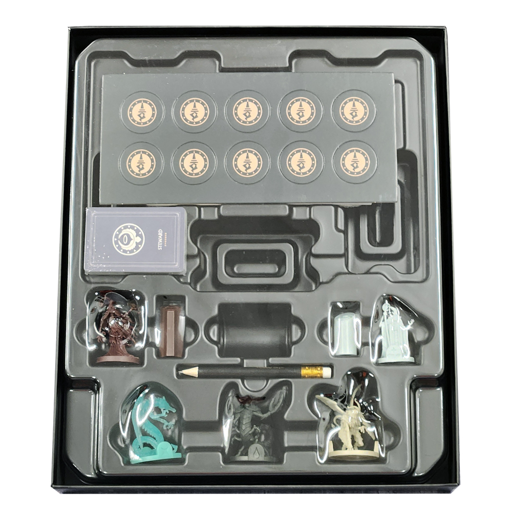 Celestials Expansion is focused on introducing more deduction and misdirection to the game and adds a new miniature, renown tracker, spell cards, and 7 celestial cards.