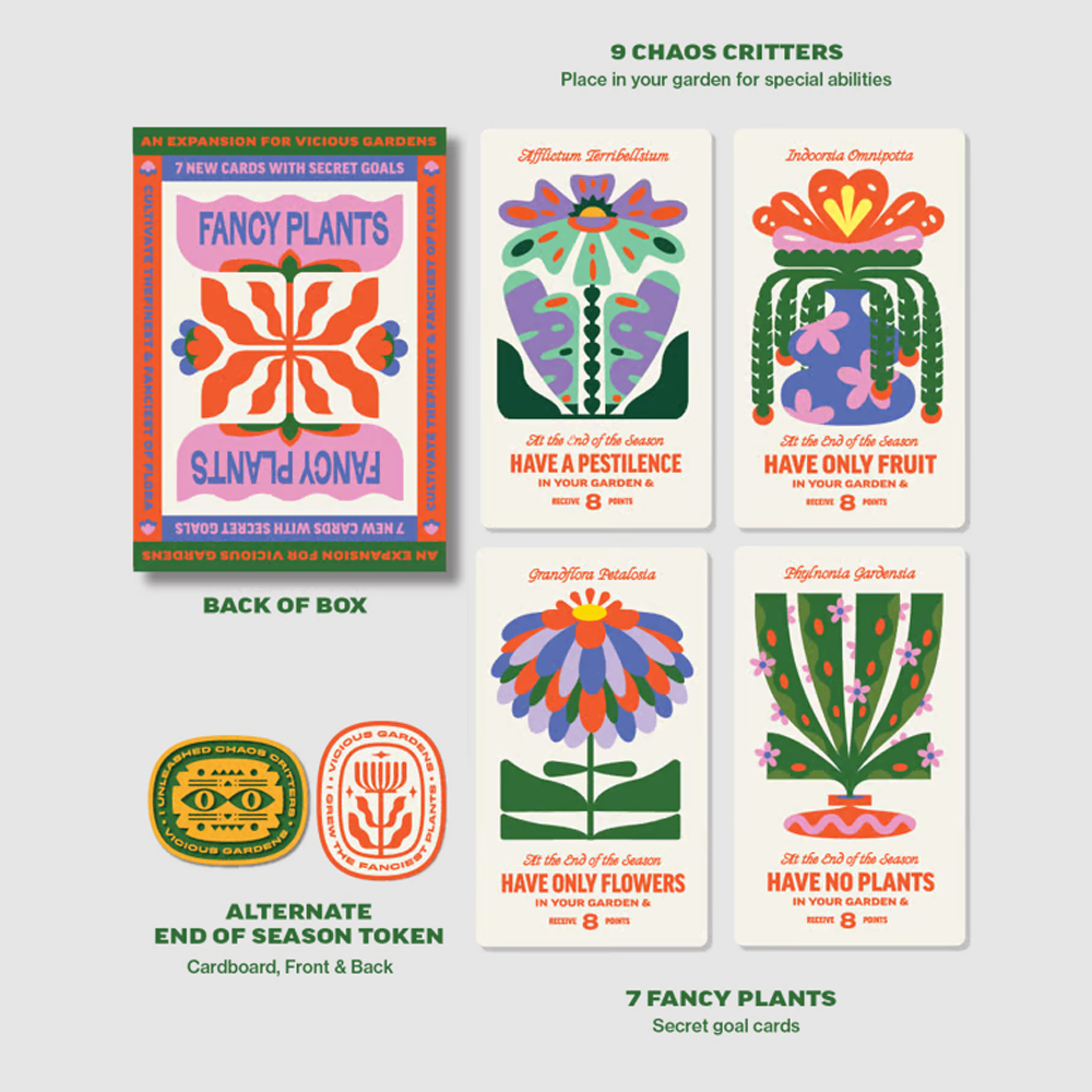 Fancy Plants: Work all season to grow the fanciest of Fancy Plants. These secret goal cards provide bonus points at the End of the Season. Don't make your intentions too obvious though, your fellow gardeners might discover your plans and try to thwart your progress.