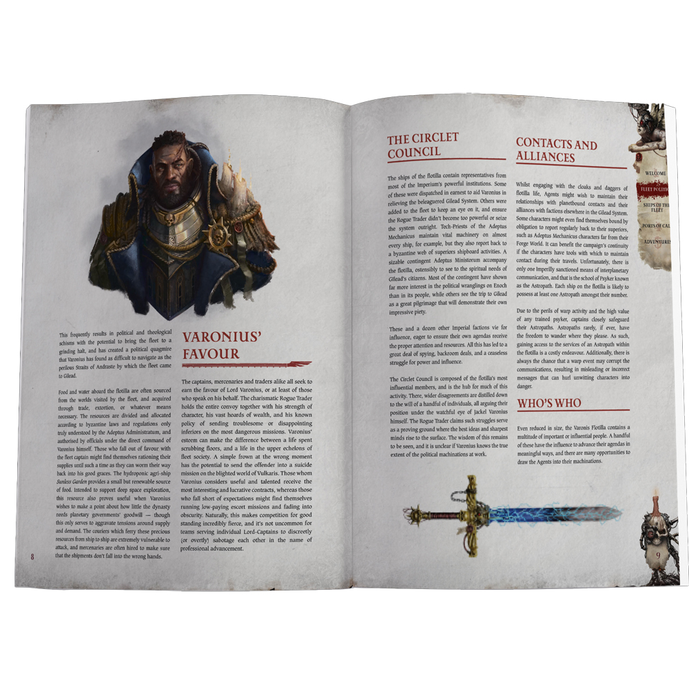 • A Guide to Varonius Flotilla: Continue your Wrath & Glory saga with this exciting guidebook, teeming with treacherous locations, fascinating characters, and epic adventures.