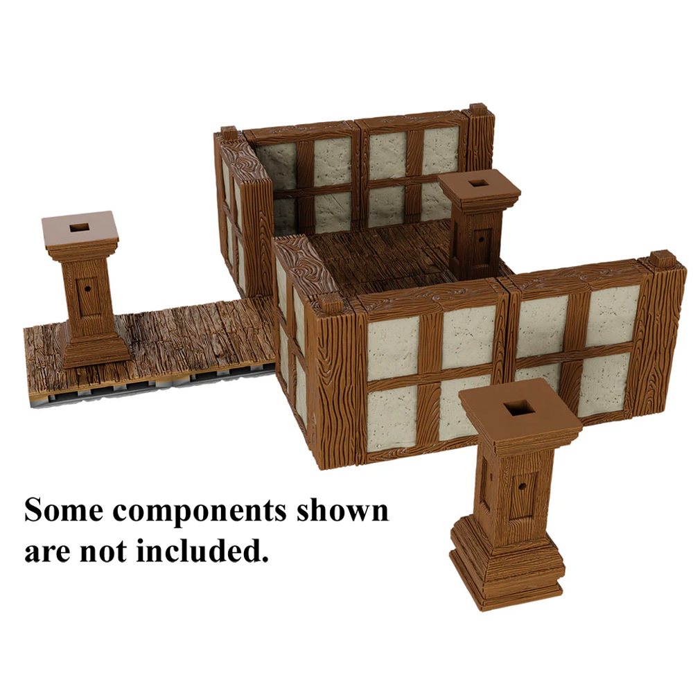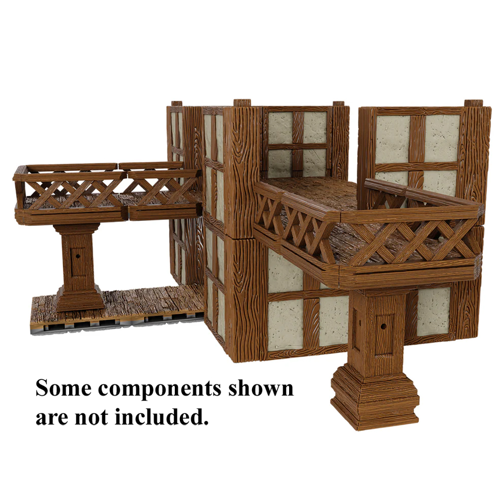 This expansion contains everything you need to add elevation to your WarLock tabletop terrain. New pillars include re-designed support notches to allow terrain crafters to safely and securely stack additional floors above one another while connecting to surrounding walls. The expansion also features modular pillar columns to either reinforce lower floors or add tension to a scene by obscuring hidden foes, as well as balcony edgecaps of multiple sizes to give the villain an elevated perch from which to monologue at the heroes.