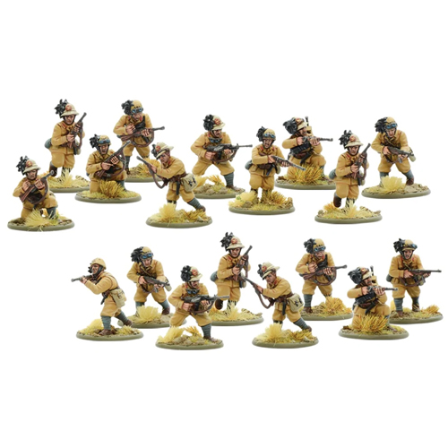 This Bolt Action starter army provides a great value core to your new Bersaglieri army. Whether you wish to build your light infantry to fight in the Battle of France, the campaigns in Africa and Sicily or the brutal fighting on the Eastern Front, these highly detailed plastic and metal figures have stacks of variety and options. Helmets and sun helmets sporting the Bersalgieri's distinctive black feathers and caps further allow for temperate or tropical troops to be built. Medium mortar, machine gun and anti-aircraft gun support elements provide additional firepower to these elite troops.