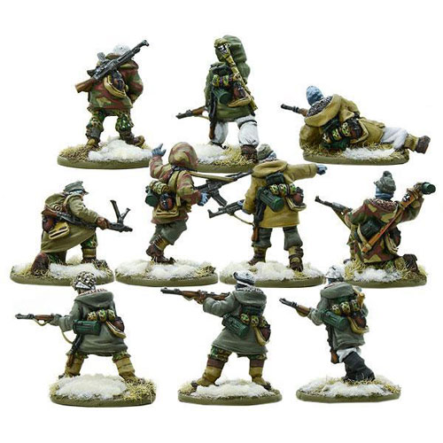 These figures are shown wearing a mix of the wool-lined M40 and fur-lined M43 parkas issued to Waffen-SS troops - the latter being available in grey, tan or Italian camouflage pattern.