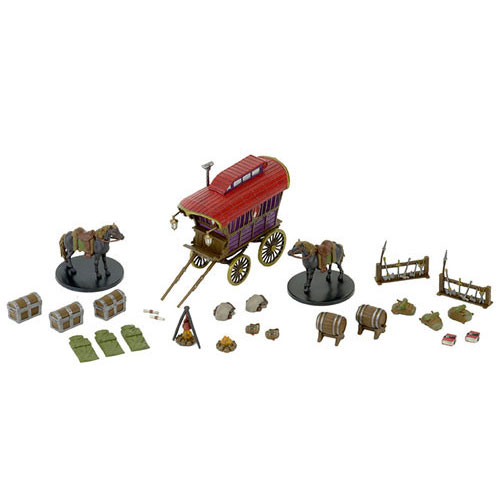 I really like this set of miniature additions because it helps bring to life a campsite, which can often be a good arena for a fight. However, one of the horse minis broke off its stand and some pieces like the campfire cooking stand are made pretty poorly.